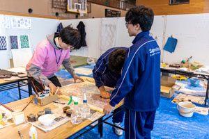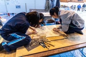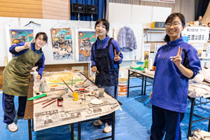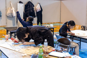 取材内容を反映しながら、版画の彫り作業を進めているようです。